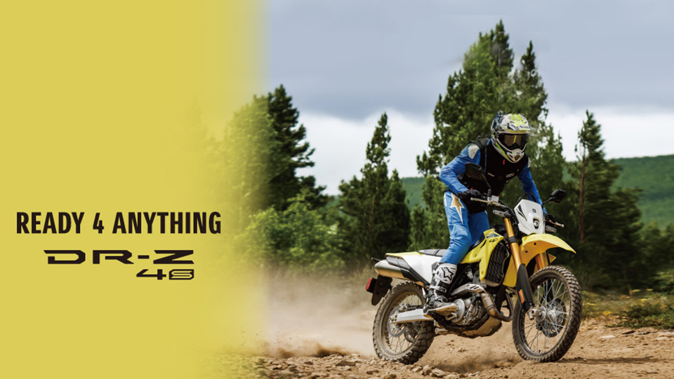 DR-Z4S 的產品理念為「Ready for Anything」, 象徵這台車具備征服全地形、帶領騎士前往任何地方的實力。 不論城市通勤或越野冒險,都能自在駕馭,無畏挑戰。