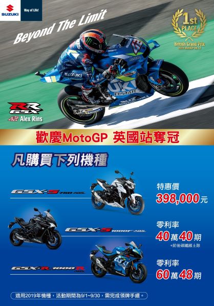【歡慶MotoGP英國站奪冠 GSX重車全車系限時大優惠】