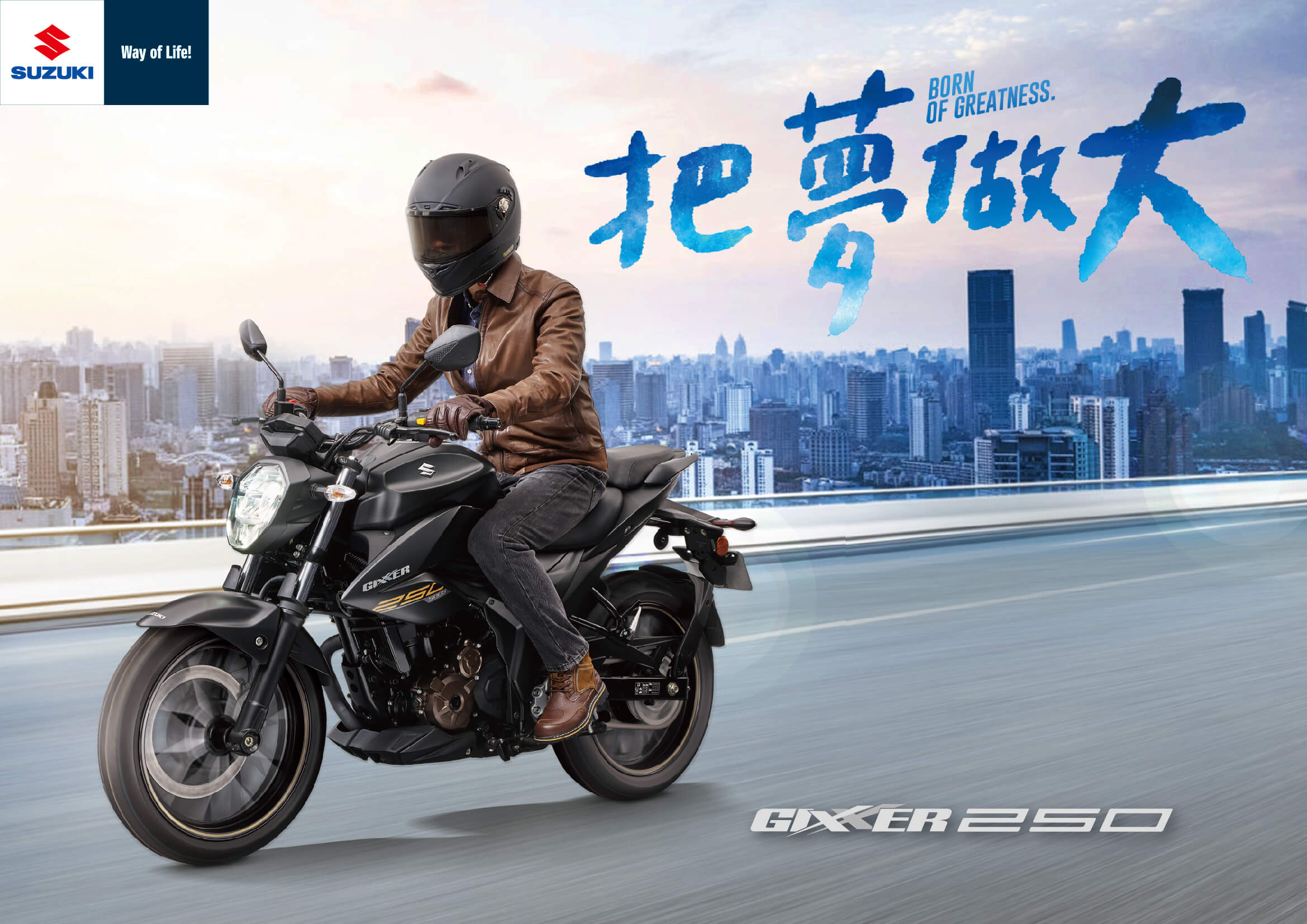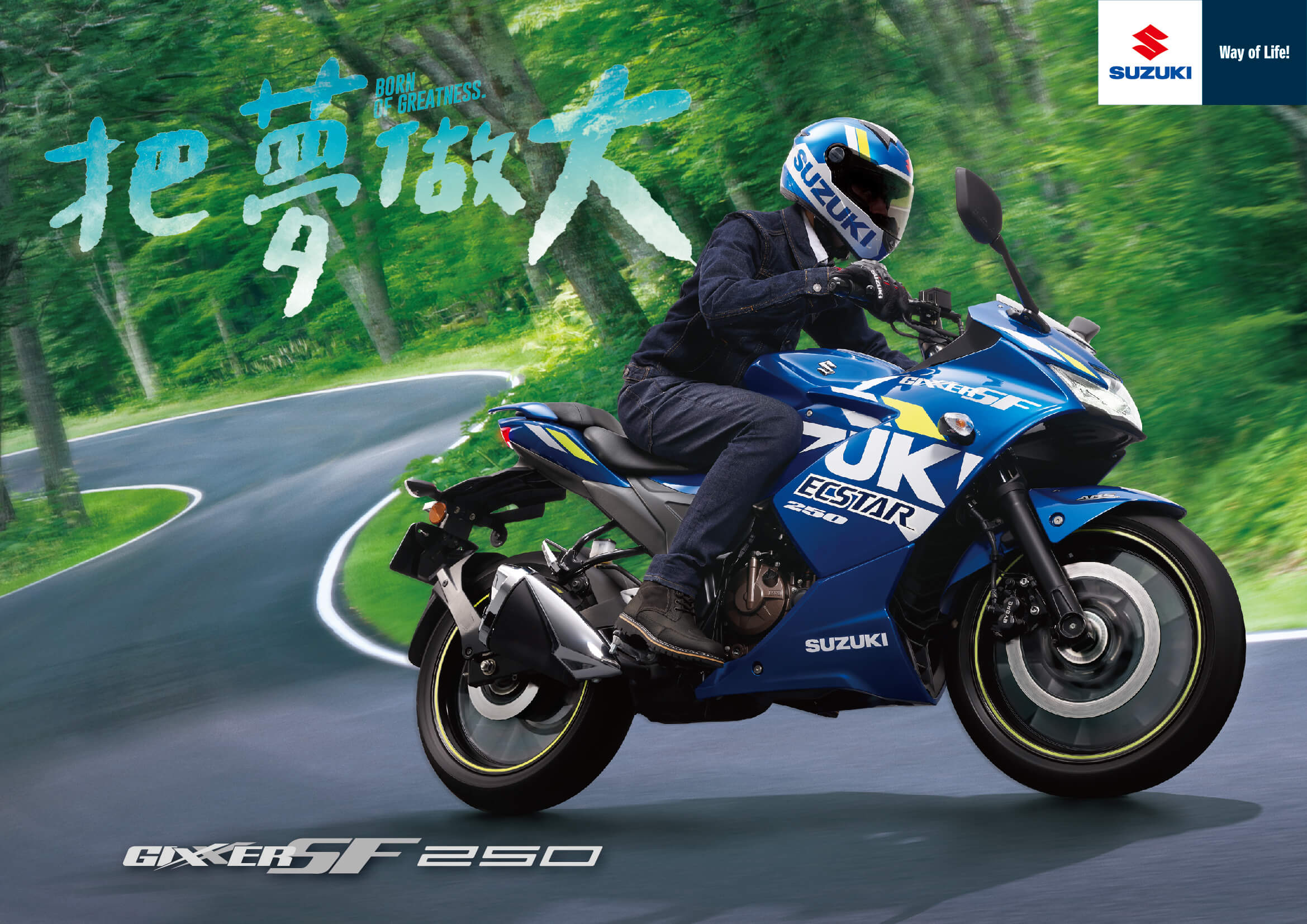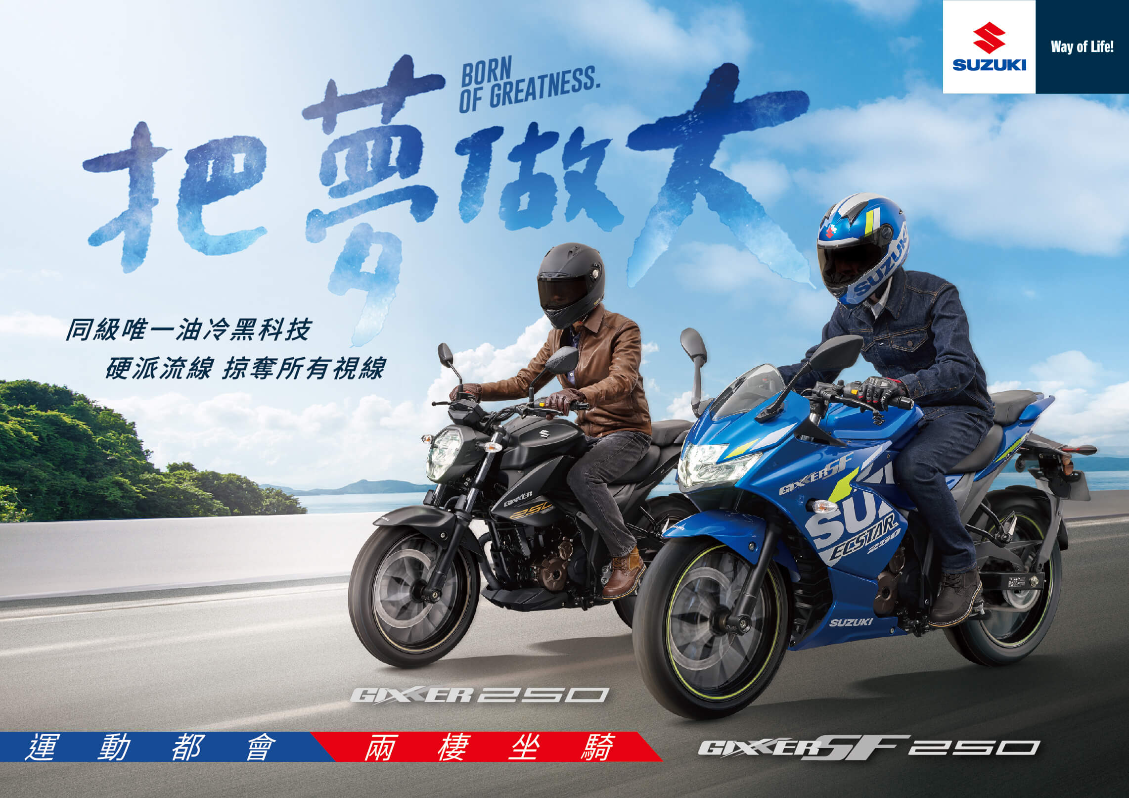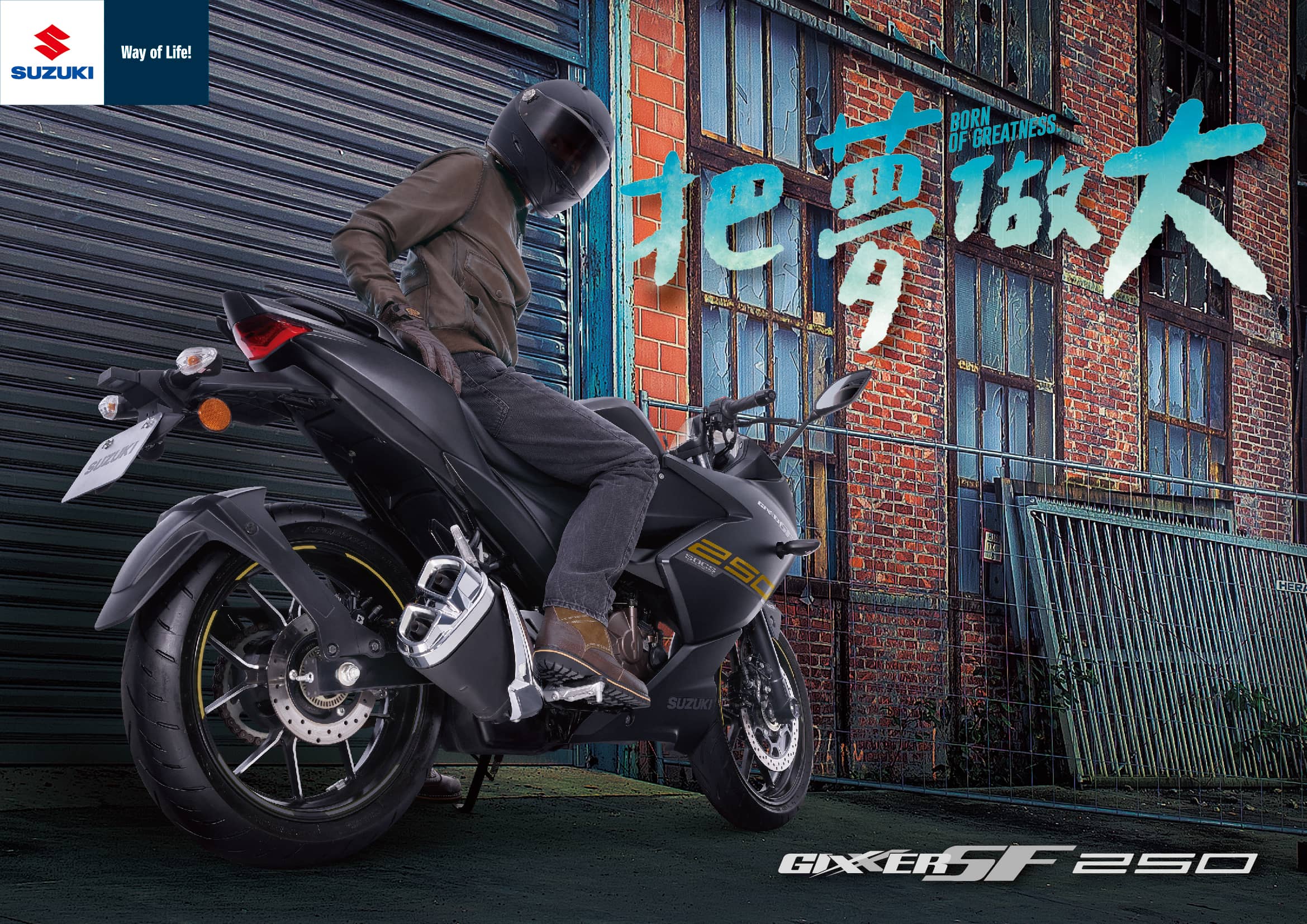 2021年6月1日–“升級你的夢想,放膽養大你的玩心,滿足內心對檔車的渴望”,GIXXER 250、GIXXER SF 250隆重登場,開創輕檔車新格局,搭載250c.c.超強馬力油冷引擎;與日規同級獨家配備性能跑胎;完美騎士三角設定,並符合台灣七期環保法規,全新GIXXER 250、GIXXER SF 250就是要陪你一起把夢做大;預購再送SUZUKI免費安全駕駛課程,讓你騎得開心,玩得放心。