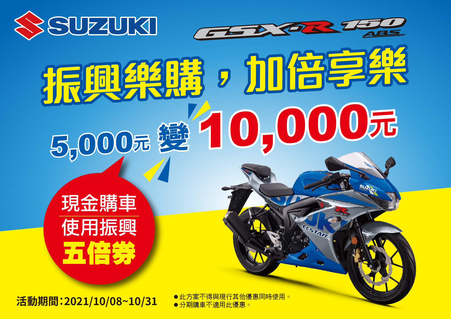 【振興樂購,加倍享樂】憑五倍券購買GSX-R150,享5,000變10,000