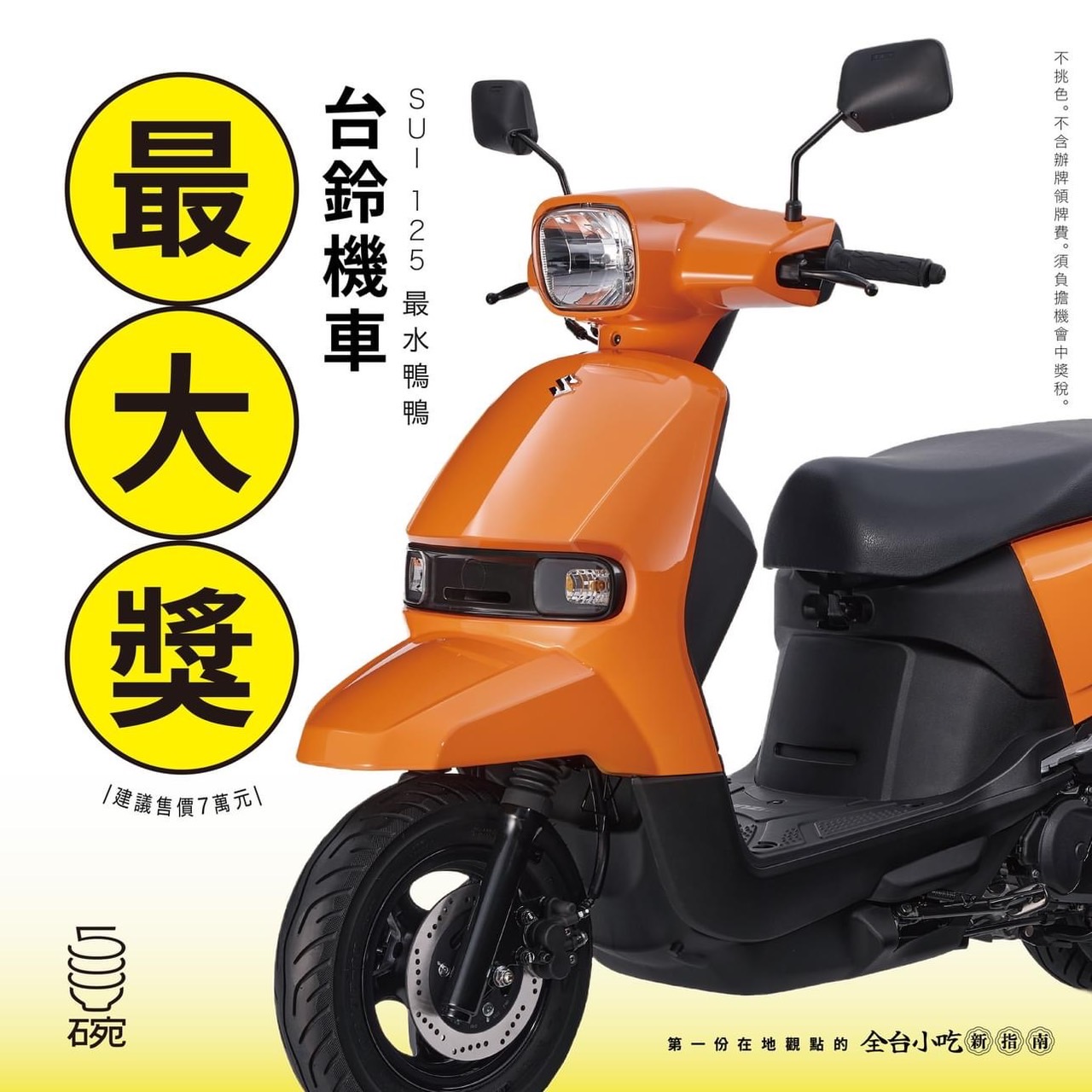 為讓全台民眾也能實際品嘗「500碗」小吃,發起「500碗集碗挑戰」活動,誠摯邀請全台饕客動起來,跟著我們展開一場出發各地的美食之旅。即日起至8月31日中午前,只要完成參賽三步驟,即可參加獎品總價值超過新台幣20萬元的抽獎,有機會將由台鈴工業贊助的最大獎SUZUKI機車騎回家,其他大獎包括ASAHI啤酒一年份、賣場禮券等!(提醒您,喝酒不開車,開車不喝酒)