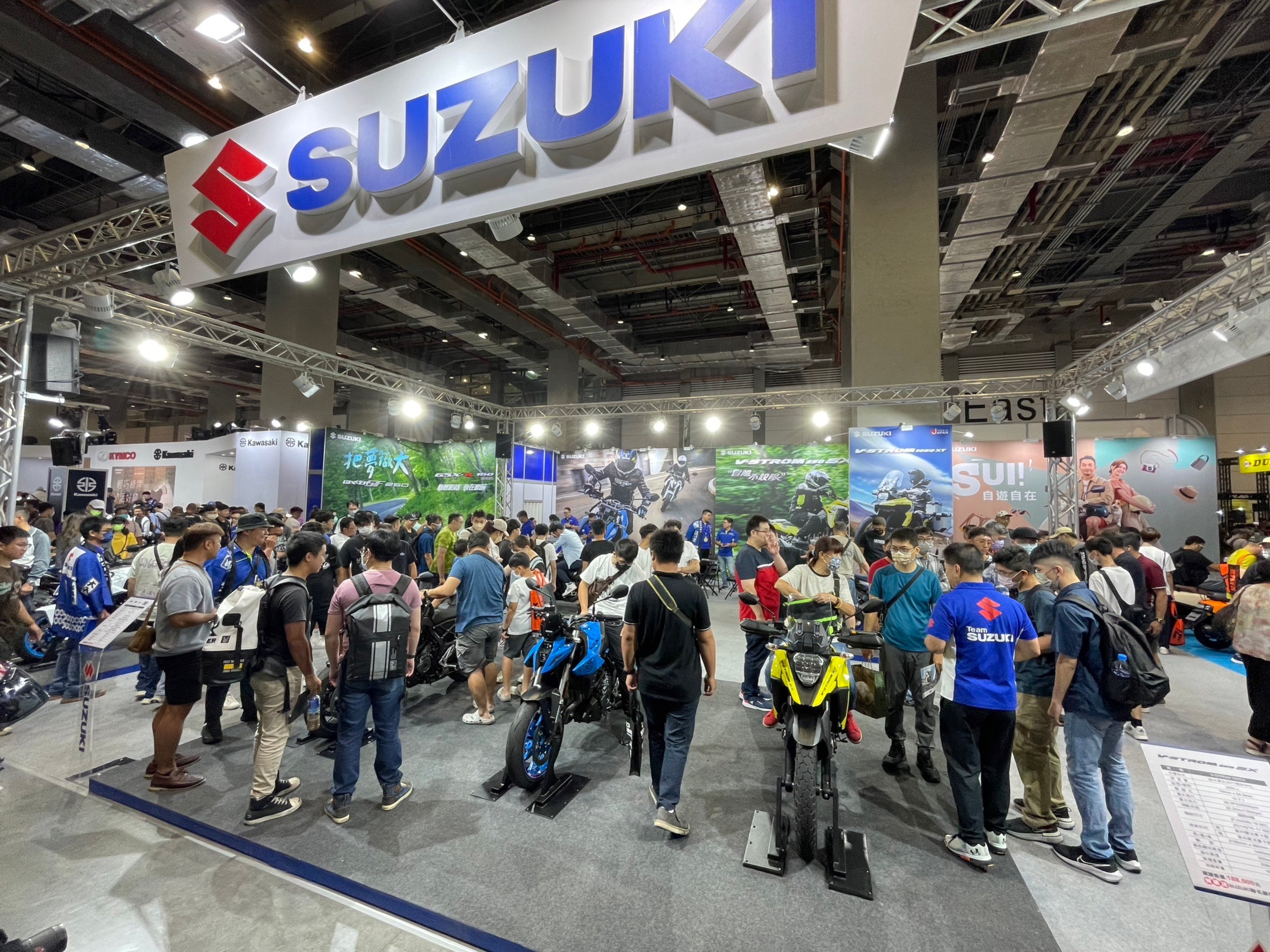 此次SUZUKI台鈴機車精銳盡出,現場展示最優質且熱門產品,包含了「全新世代運動街跑 GSX-8S」以及相當熱銷的「白牌跨界休旅V-STROM 250SX」,SUZUKI指標性最強跑旅「Hayabusa」,更有多款熱銷重機現場展示V-STROM 1050XT、V-STROM 650XT、SV650,白牌輕檔車Gixxer 250SF、GSX-R150,熱銷速可達「SUI」和新色全新上市「Saluto」,等多達15輛車輛現場展示。
