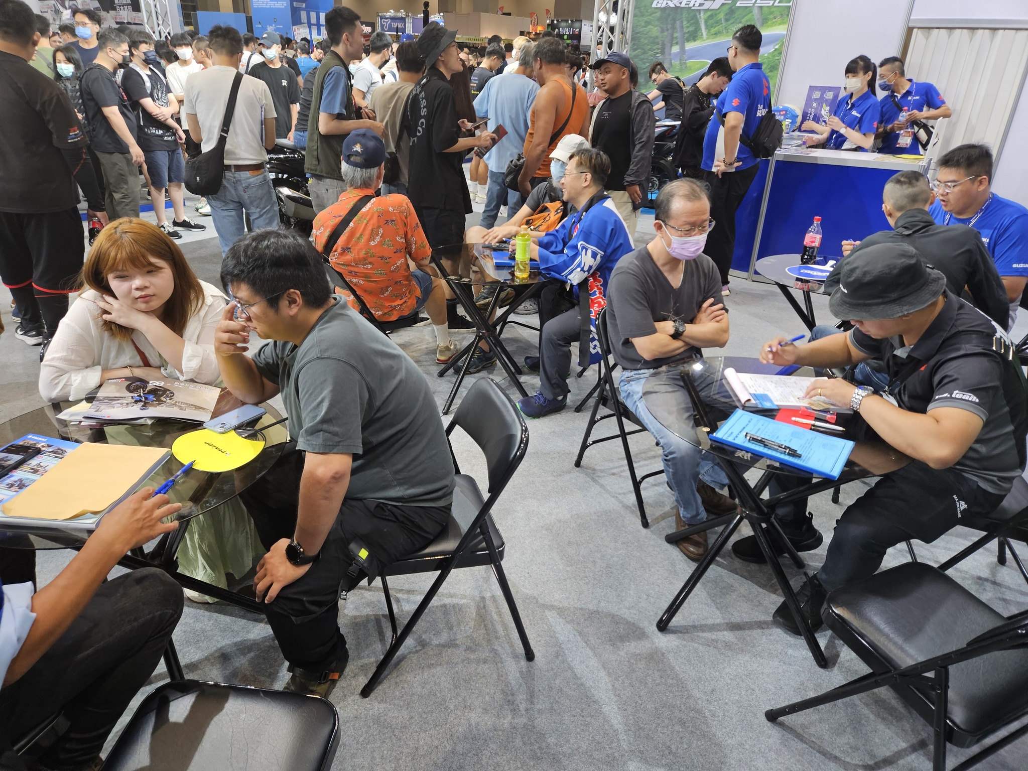 現場人潮滿滿,眾多民眾與最親民的Show Girl一同拍照享樂,展場也有多位民眾現場購車,將自己喜愛的車款帶回家,並提供SUZUKI車主專屬贈品,憑SUZUKI行照兌換車主專屬好禮,不論現任車主還是新購車主都能夠在此次重機展滿載而歸,感受SUZUKI台鈴機車最熱情的優質體驗。