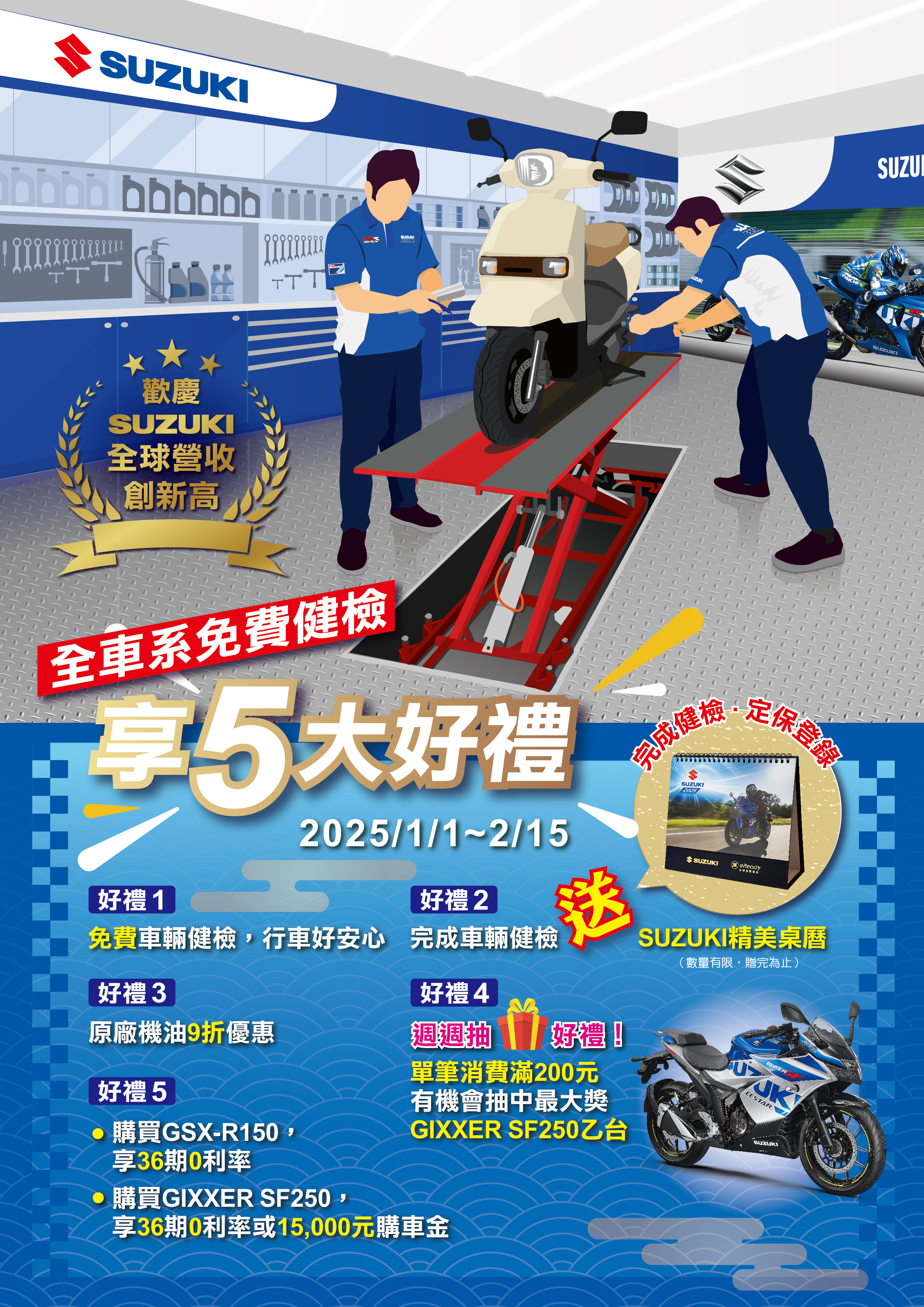 2完成健檢送 #SUZUKI精美桌曆 (數量有限,送完為止)