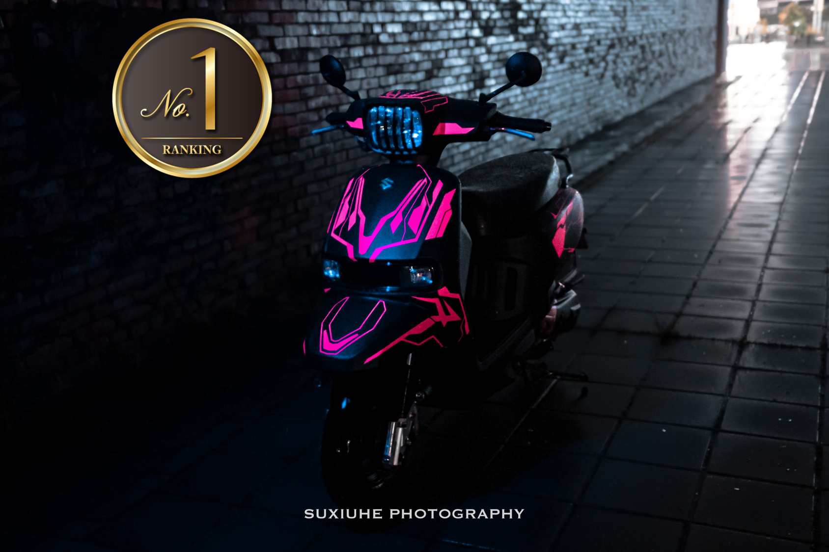 雙層烤漆搭配螢光粉紅塗裝,色彩飽和、線條俐落,遠遠一看即展現高辨識度。紫外線照射下車體滿布搶眼螢光粉紅,展現出前所未見的視覺享受。整體外觀設計統一性高,展現出創作者對細節與風格的堅持。這是一台技術與情感交織的作品,無與倫比、極具靈魂。