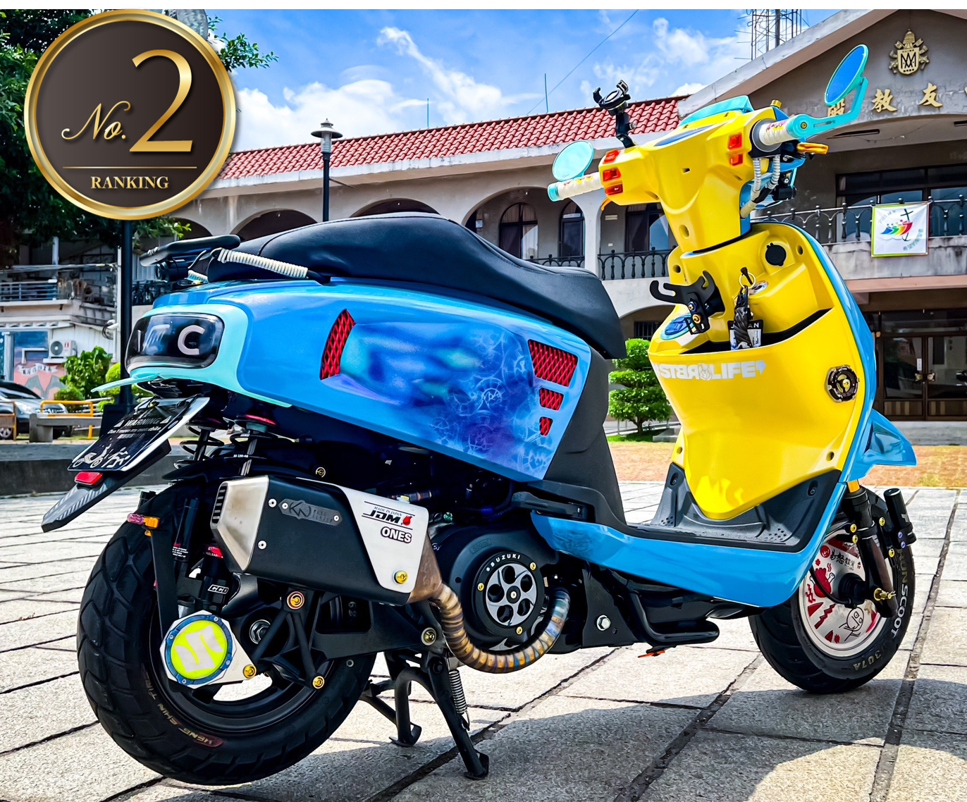 亮黃撞冰藍的配色大膽吸睛,搭配插畫鋁圈與飾蓋等細節層層堆疊,展現強烈街頭風格。視覺辨識度高,這是一台充滿玩心與自由想像的創作,遠遠一看就是主角級存在。