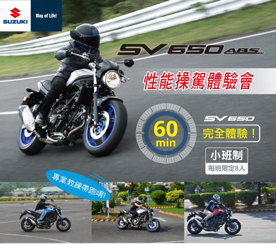 超人氣日本進口街車SV650 讓你徹底體驗SV650的性能操駕體驗會來了! 6/18 台南 成功駕訓班 6/24 桃園 忠原駕訓班 全新的關卡體驗,透過專業教練的介紹指導, 讓你以更全面...