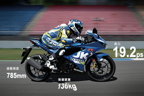 GSX-R150 擁有強勁的動力與輕量化的車身設計,使得 GSX-R150 在同級距機種中有著絕對的優勢,曲線造型油箱提供騎士更穩固的夾持感、分離式坐墊則完全展現出仿賽車應有的騎乘坐姿,高聳的明亮尾燈則讓後方的追隨者,無法忽視你的存在!