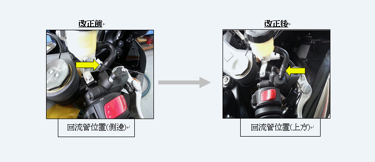 將前煞車主缸更換為對策後煞車主缸。( 改正位置參考下列說明圖 )